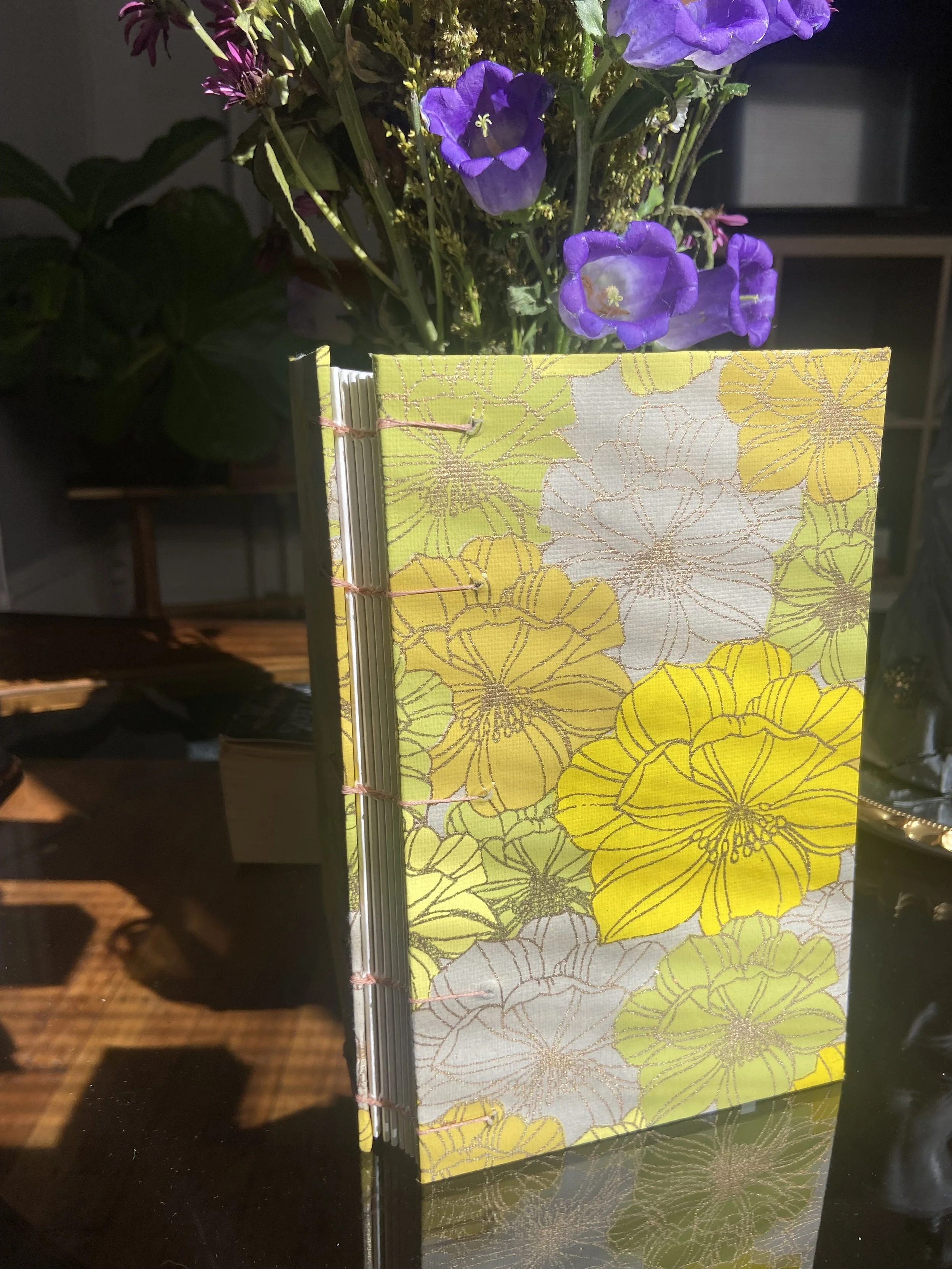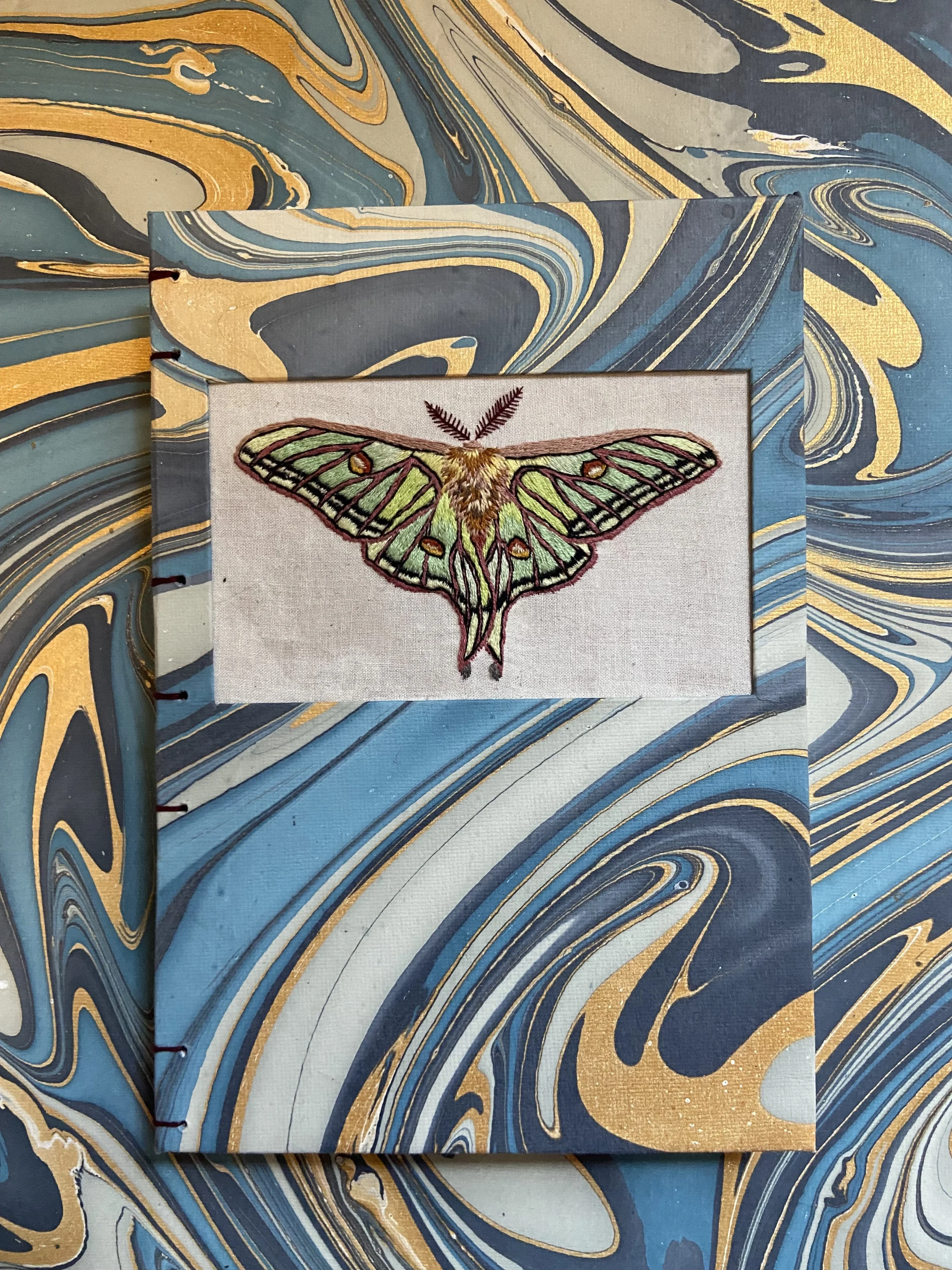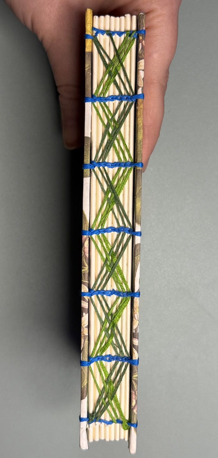 Em has explored numerous binding techniques, but favors mixing Coptic stitch with French Link. They mostly create blank sketchbooks and notebooks to support other artists and writers in their endeavors. In their downtime, Em also turns old paperback books into hardcovers, giving life to older, well-loved books. Currently, Em is attempting to learn leather binding.